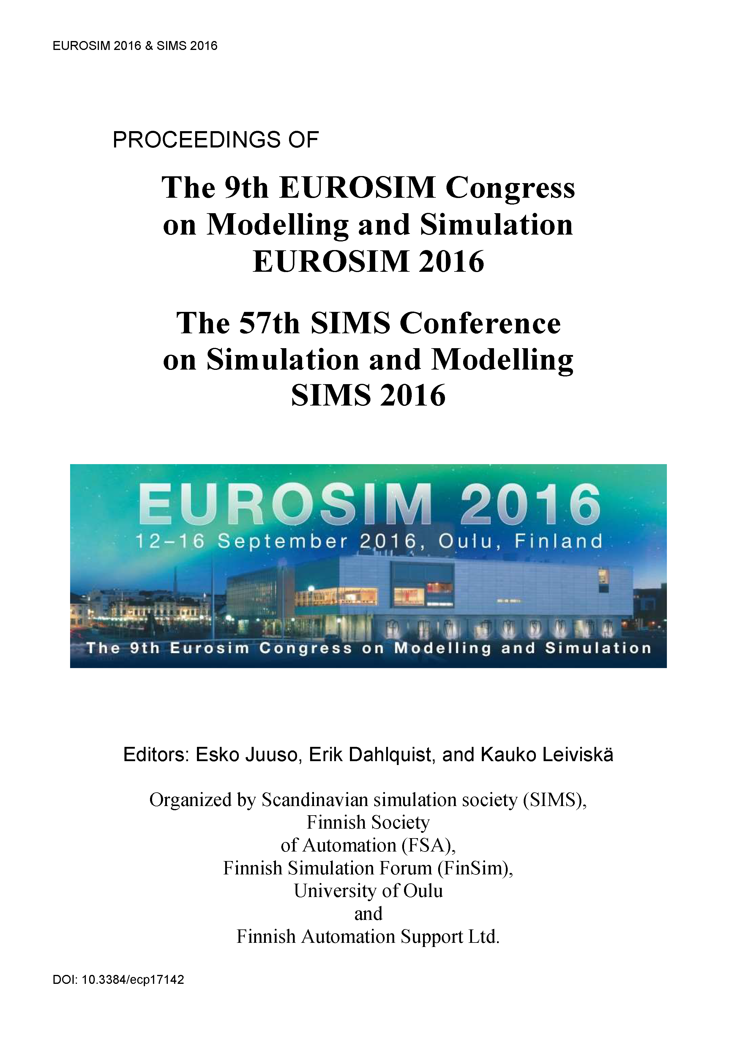 The 9th Eurosim Congress on Modelling and Simulation (Eurosim 2016) and the 57th SIMS conference on Simulation and Modelling (SIMS 2016) were held jointly in the City of Oulu, Finland. The Federation of European Simulation Societies (Eurosim) was set up in 1989. The purpose of EUROSIM is to provide a European forum for regional and national simulation societies to promote the advancement of modelling and simulation in industry, research and development. The program committee has organized an exciting and balanced program comprising presentations from distinguished experts in the field, and important and wideranging contributions on state-of-the-art research that provide new insights into the latest innovations in the field of modelling and simulation. EUROSIM 2016 was organized by Scandinavian simulation society (SIMS), Finnish Society of Automation (FSA), Finnish Simulation Forum (FinSim), University of Oulu and Finnish Automation Support Ltd. SIMS was founded in 1959.